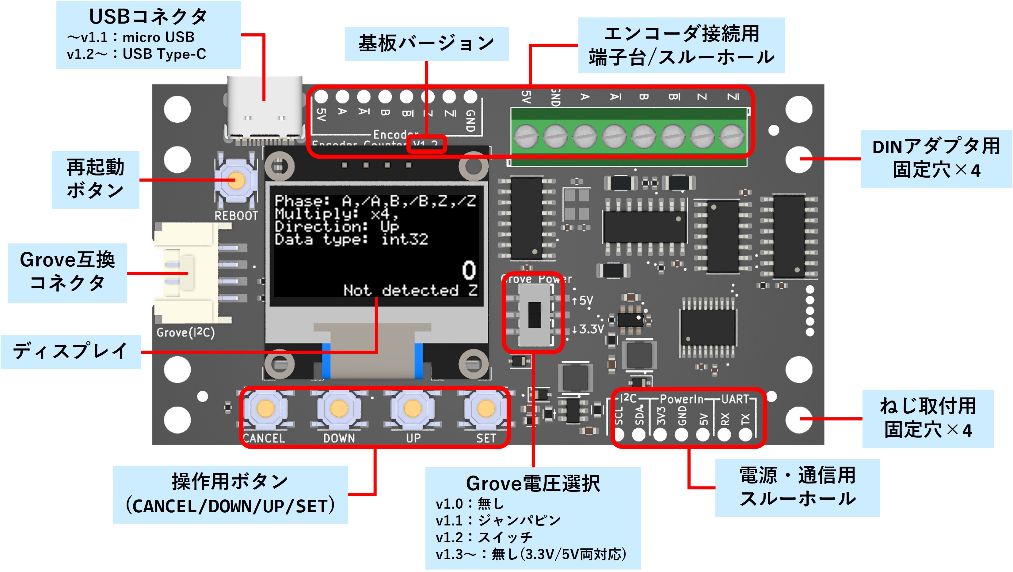 基板上のボタンもしくはI2Cコマンドでエンコーダと通信の設定を行ってください。